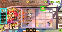1、玩法的话,和植物大战僵尸一样,就是在对应的格子里面种上你的食物,然后去防御一些老鼠