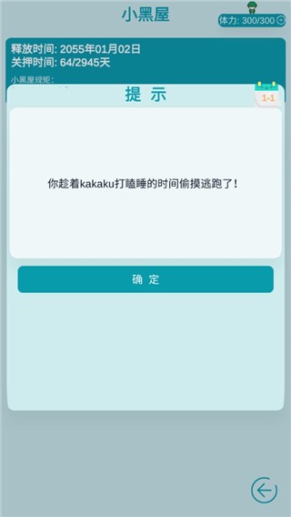 1、倘若你因见义勇为而被关进小黑屋,可在主页面点击【小黑屋】进入(处于小黑屋期间,时间会正常流逝,但你无法进行其他操作)。