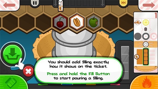 3、再去滑动一下上面的按键,找到对应的馅料,再点击左侧的按键,右侧会出现一个进度,满了以后即可。