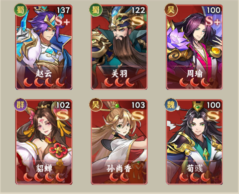 2. 包含赵云、关羽、周瑜、貂蝉、孙尚香以及荀彧