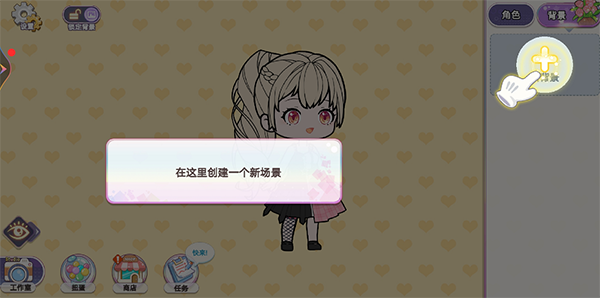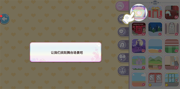 4、为角色挑选完成服装搭配后,还可以点击右上方为角色切换到背景搭配;