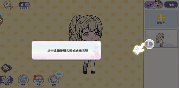 2、点击编辑按钮,帮助角色选择衣服进行搭配;