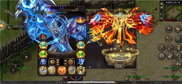 3.使用合击技能,借助神兽、特戒增强角色战斗力,通过幻化翅膀、坐骑提升外观。