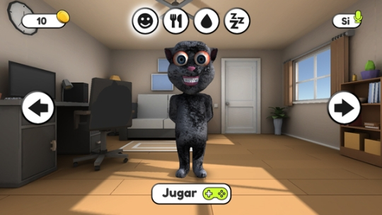 这款游戏的玩法和会说话的汤姆类似,玩家点击屏幕上的按钮,就能指挥胡安做许多事,操作不难,每位玩家都能在此享受云养猫的乐趣。而且游戏里的猫咪会说话,虽说胡安长相有点惊悚,但它可是只乖猫咪。