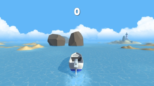 6、如下图就是其中的一个小游戏,玩家需操纵小船前行,以及躲避海上的礁石;