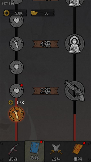 5、在主界面点击修炼可以消耗铜币来解锁不同的天赋与技能。