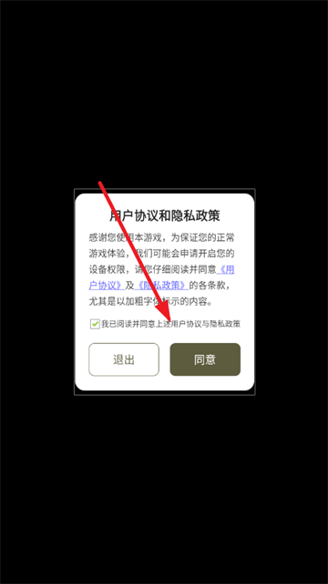 1、于本站下载游戏完毕后,开启游戏,点击同意用户指引。