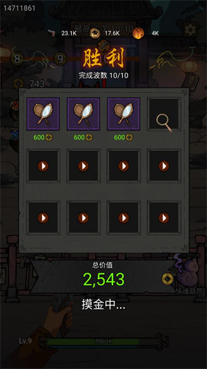 4、不断坚持更长时间来消灭关卡boss,击败boss后可以摸金来获得不同的宝物。