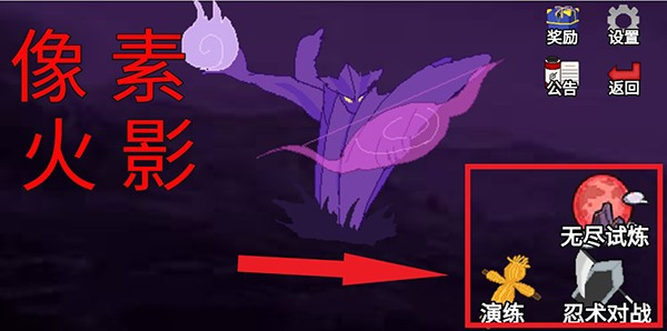 2、然后玩家就可以在无尽、演练、忍术三个对战模式中选择自己喜欢的开始对战啦