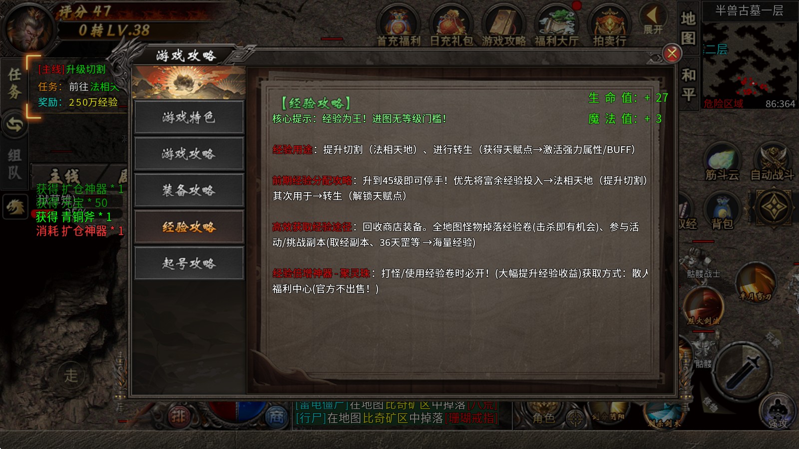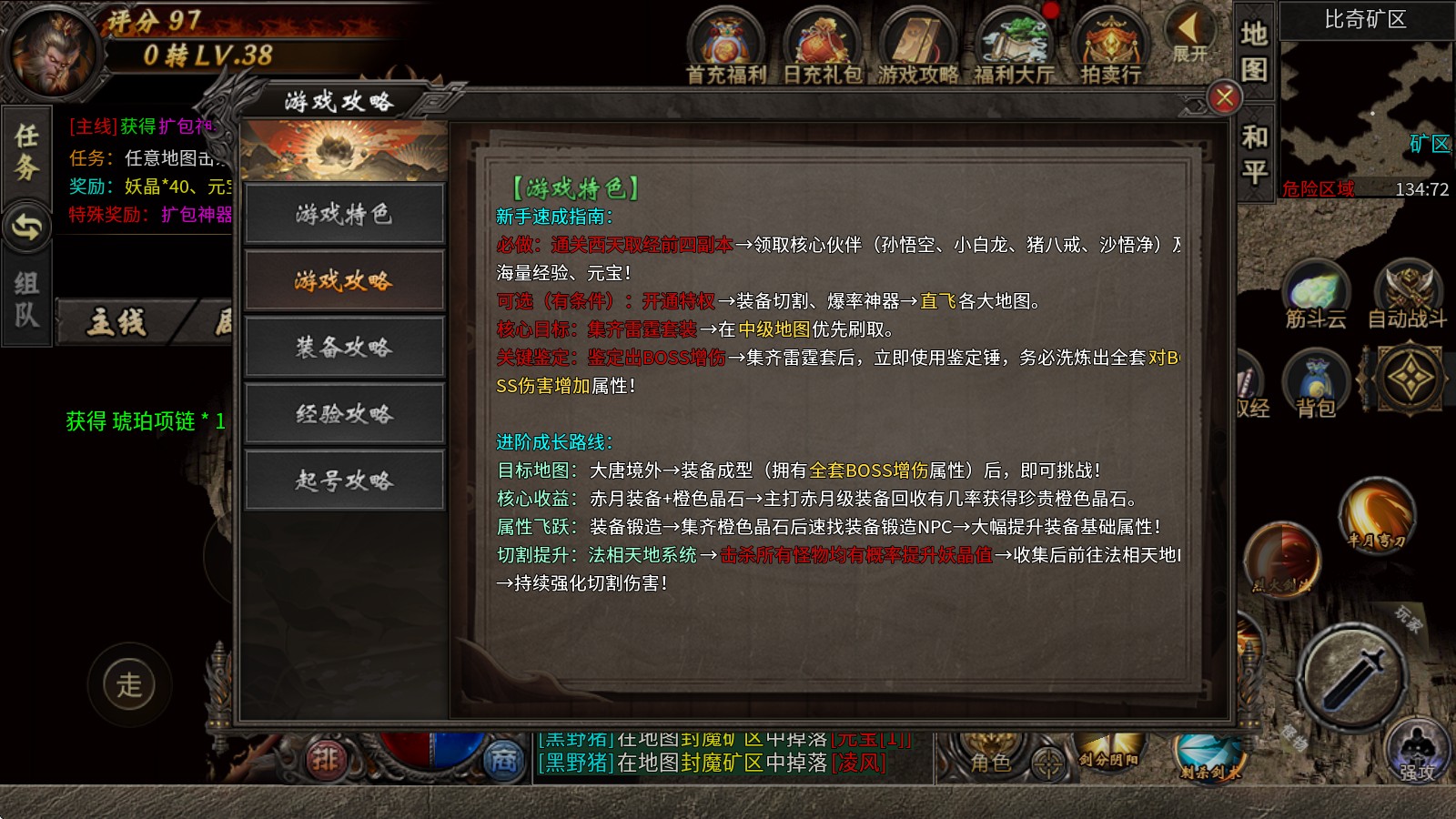 4、高效获取经验途径:回收商店装备,全地图怪物掉落经验卷(击杀即有机会)、参与活动/挑战副本(取经副本、36天罡等)。