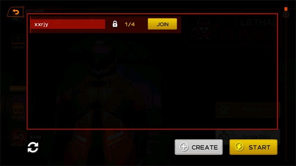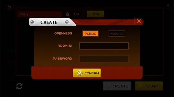 10、点击create可以自己创建房间邀请其他玩家加入游玩,每个房间最多可以支持4位玩家。