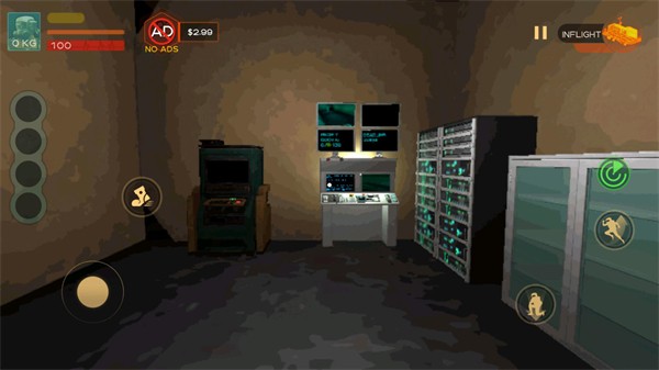 3、正式开始后左边控制移动,右边分别是雷达、跳跃、蹲下按键,滑动屏幕可以转动视角。