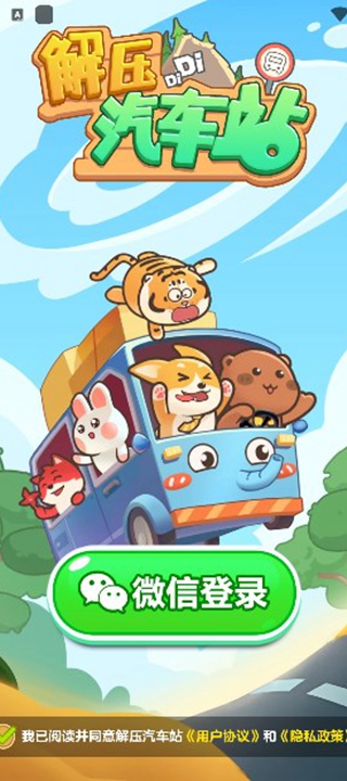 1.下载好游戏之后,进入游戏用微信登录即可,还要知悉解压汽车站的用户协议。