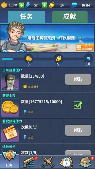 最后,游戏中的任务所给予的成就奖励十分丰厚,这能助力玩家强化武器。此外,玩家还可通过签到、转盘等方式获取其他奖励。