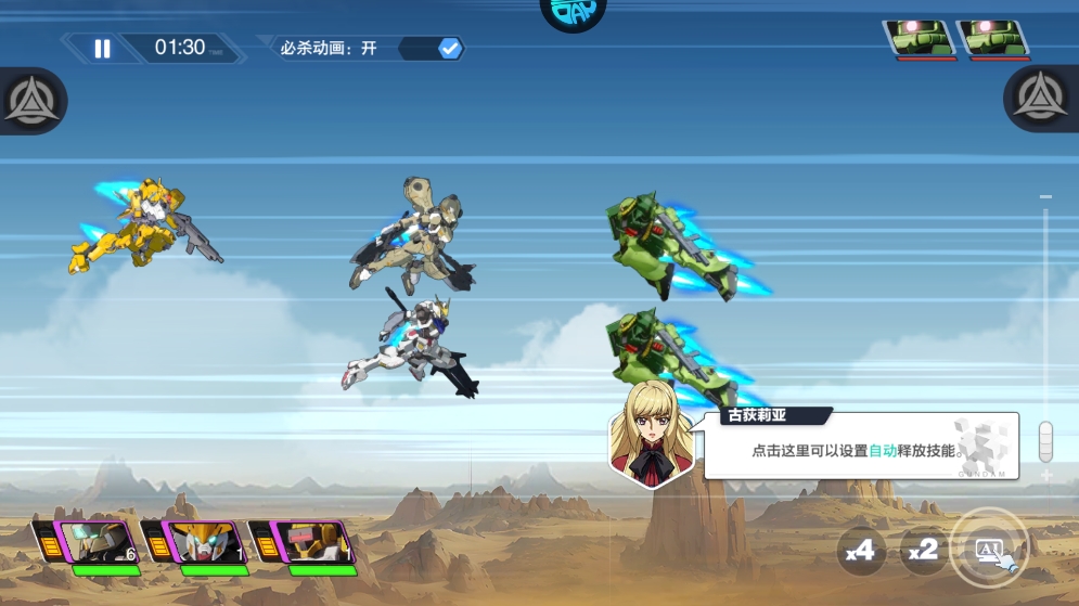 正版高达IP授权,经典机体全收录!横版卡牌战斗融合策略布阵,自由搭配专属机甲小队。