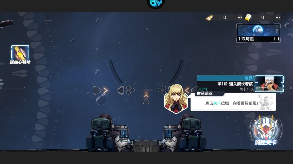2、进入游戏后,跟随指引点击前往第一阶关卡,开启你的首场机甲战斗,感受横版卡牌策略对决的魅力。