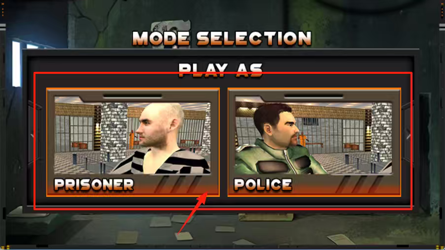 2、在模式选择界面,点击左边的“PRISONER”选择当囚犯,点击右边的“POLICE”选择当警察。选择好角色后即可开始游戏。
