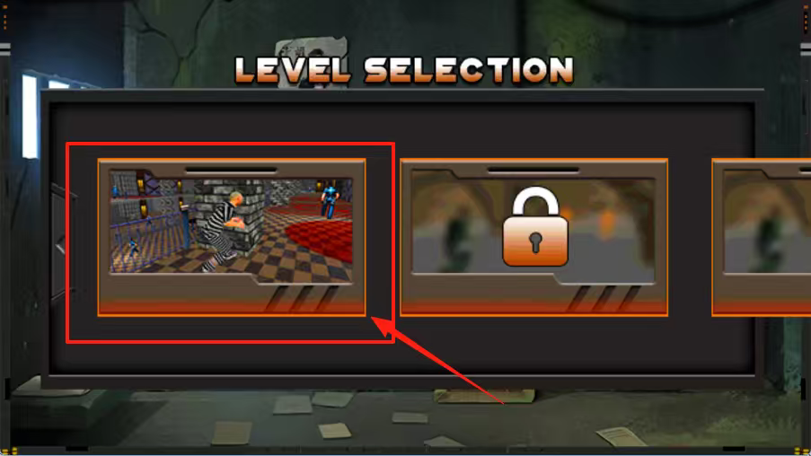 3、来到关卡选择界面,你会看到三个选项。第一个关卡已经解锁,点击它即可开始第一关。其他关卡需要在游戏进程中逐步解锁。