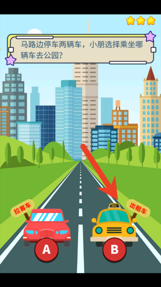 2、在模拟的真实路况中做出判断:正确过马路、礼让行人、识别交通标志等,每个选择影响安全评分