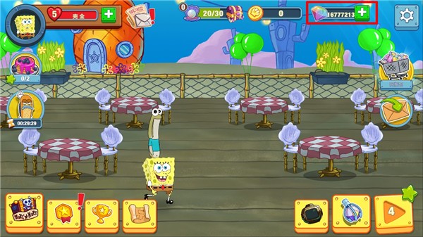 和海绵宝宝一起打理美食店,协助蟹老板赚取更多的财富,首先你得让这家餐厅变得更加受欢迎。