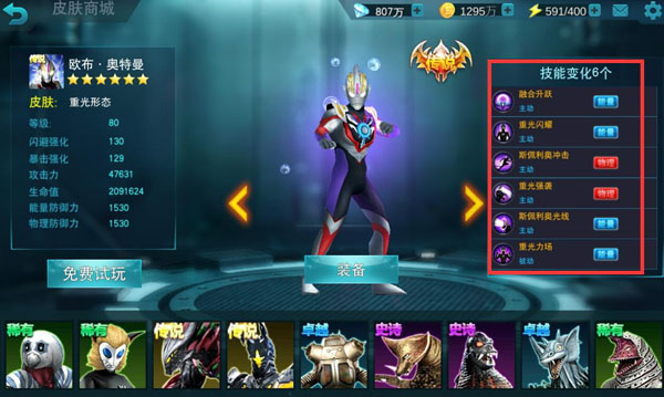 3、奥特曼宇宙英雄里使用更多的道具可以获得大量的关卡挑战能力,更换游戏中的挑战能力即可成长。