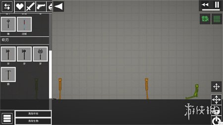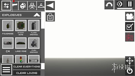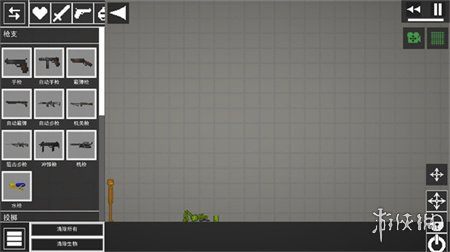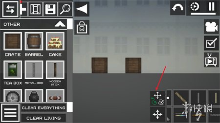 2、进入游戏地图后,你可以在界面左侧看到各种选项,如添加人物、武器、道具等,点击选中这些物品后,拖动它们即可将其放置到游戏场景中。