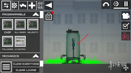 2、使用融合器可以创造各种有趣的物品,例如,放入芯片可以得到机器人,将大型炸弹和水果(如苹果)放入融合器,可以得到爆炸人物(爆炸人按住头部启动后会直接爆炸消失)。