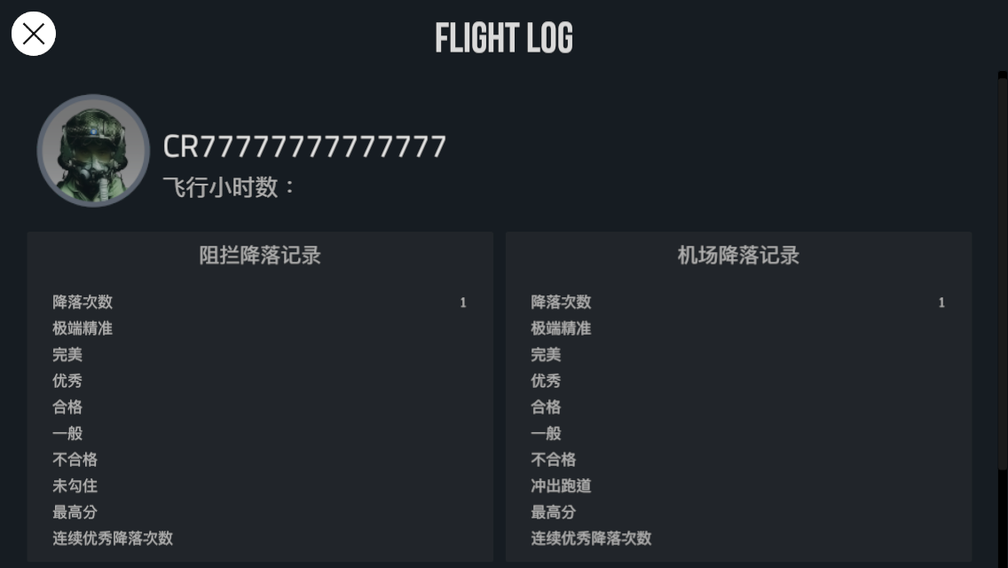 这里面可以显示你的飞行次数和你的一些成绩,非常有用,可以看自己的水平是否提升。