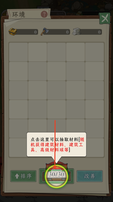 6、点击这里抽取升级鱼塘环境的材料;