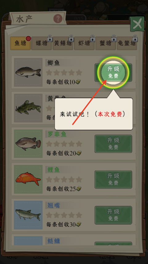 4、升级你鱼塘里的鱼;