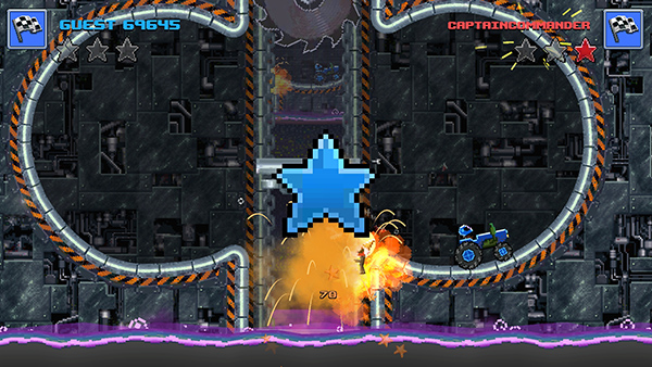 4、玩家可以操作各种各样的赛车去进行撞击,将对手撞出赛道就算胜利。
