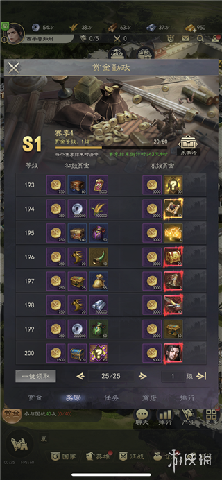 7、每当完成一个任务时,玩家可以获得赏金经验以提升赏金等级(共有200级)。当赛季结束后,无论是否达到200级,赏金等级都将停止升级。下一个赛季开始时,等级将清零,但赏金币将保留。