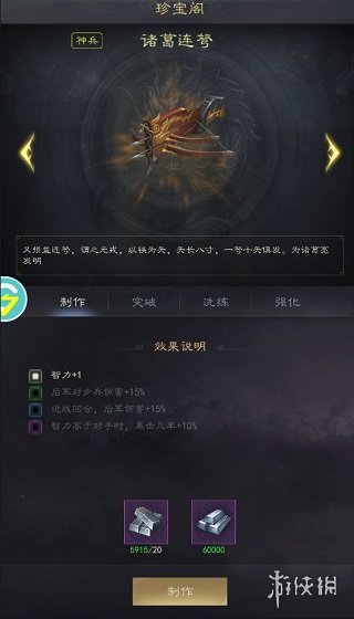 3、在珍宝阁内,玩家可以选择心仪的装备进行制作。