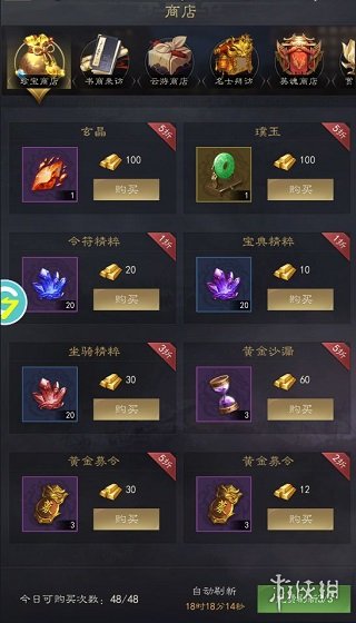 1、珍宝阁是游戏中装备产出的重要场所,升级珍宝阁可以增加珍宝商店的每日购买次数。