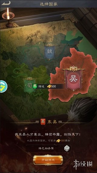 1、初始时,玩家可以选择魏、蜀、吴三个阵营中的一个,自立为主公,招募天下的英杰,参与领土争夺,目标是一统天下。