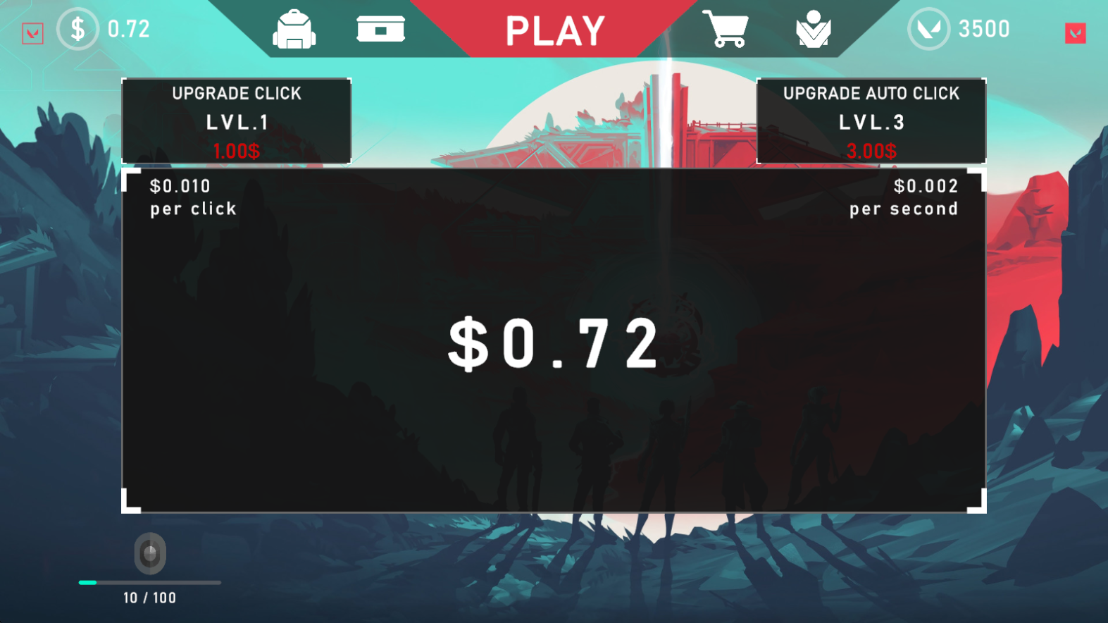 1、刚进入游戏,便能看到金币界面,轻触一下屏幕,即可获得0.01的金钱。