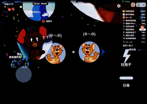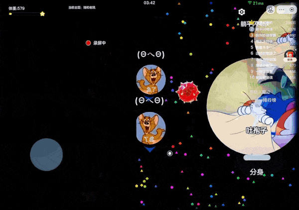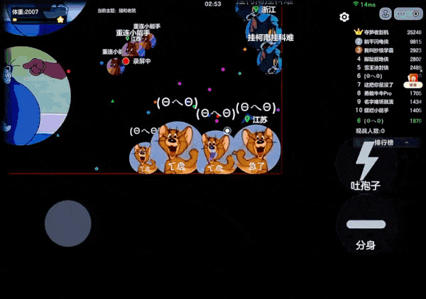 4、接下来就到主动出击的时候了,局势已经在咱们掌控之中。这时候只要看到比自己小的球,直接吃掉就行。同时盯着中间那个最大的球,等它露出破绽,咱们就能抓住机会反杀一波!