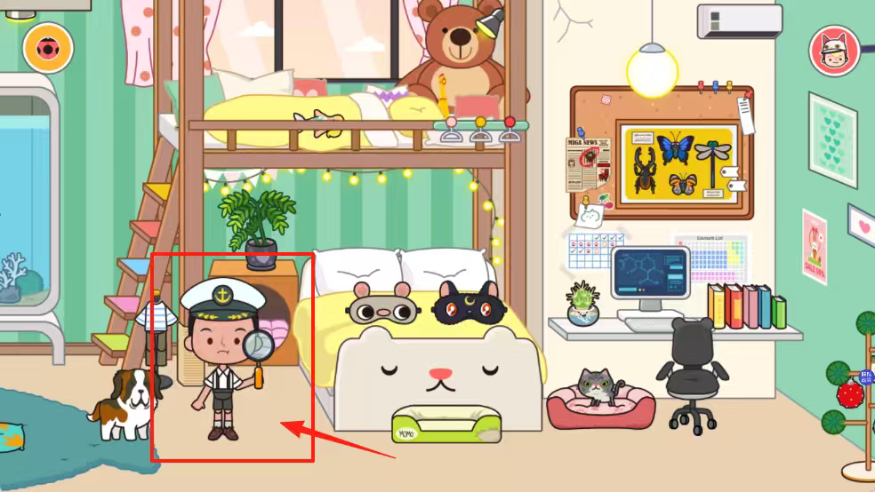 4、点击双层床旁边的放大镜男孩,和他一起玩寻宝游戏。
