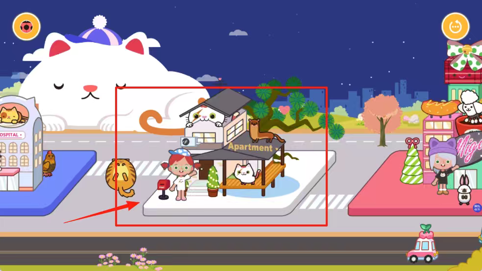 2、选择蓝色公寓楼场景,点击门铃进入房间。