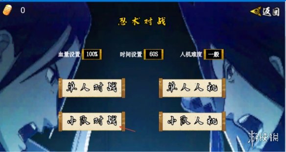 1、打开游戏后,首先选择“忍术对战”模式,接着在子菜单中选择“小队对战”。
