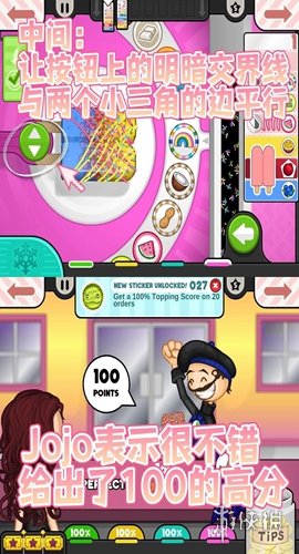 1、根据客人的需求,选择合适的模具和食材,当小箭头移动到菱形方块的位置时,点击按钮停下。