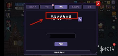 5、发送申请后,将看到已发送好友申请的提示,此时需等待对方同意,对方同意,您即可成功添加该好友。