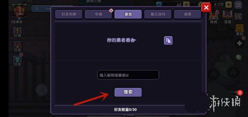 3、在随后出现的输入框中,输入好友的ID,并点击【搜索】按钮。