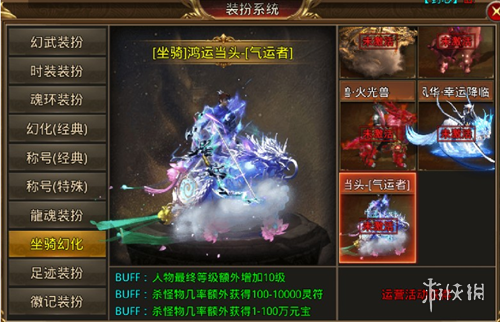 装扮系统涵盖了丰富多样的种类与样式,包括幻武、时装、魂环、称号、坐骑、足迹等。