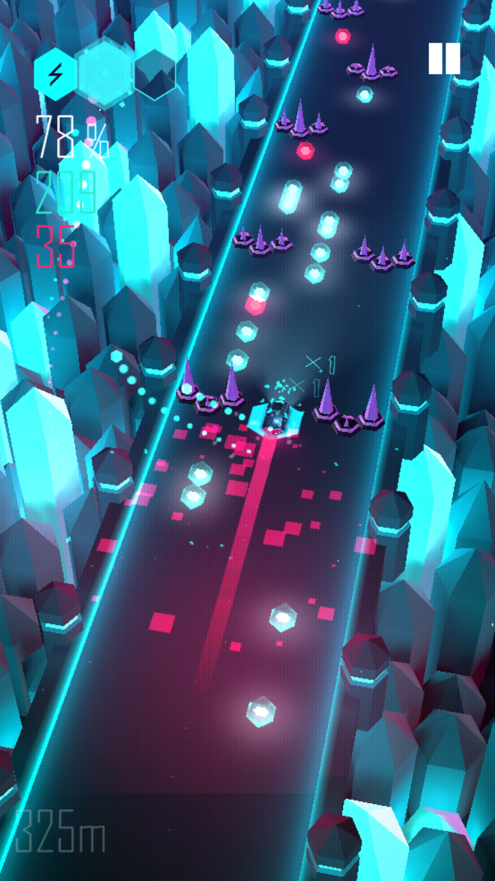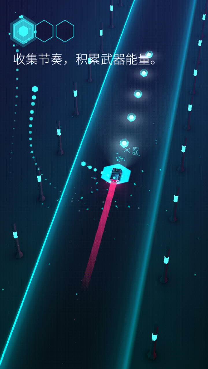 1、借助左右移动和跳跃动作,收集节奏能量,同时避开障碍物,操作逻辑一目了然。