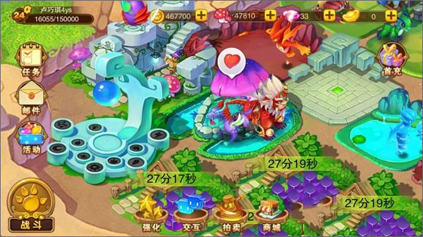 游戏画面堪称极致精致,那如梦似幻的岛屿与建筑,与生动逼真的3D神兽造型相得益彰,使得整个游戏画面仿佛拥有了生命,鲜活灵动、惹人怜爱,玩家仿佛真切地踏入了如同童话般的神兽世界。音效方面,整体营造出轻松活泼的氛围,可爱中又透着俏皮。玩家在这样的音乐环境里,进行诸如建造领域、喂养神兽等操作时,能深刻感受到轻松愉悦的游戏格调。