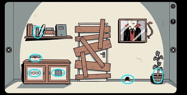 15、注意吸血鬼做出反应后给出的提示,紧接着按顺序输入信息,打开相框背面的保险箱,然后拨动保险箱里的开关,打开大门。出门后,游戏就宣告结束。