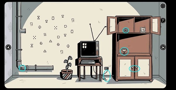 13、把老鼠从水管上方投放进去,随后在下方拿到「钥匙」,紧接着用钥匙打开右侧的柜子,获取「螺丝刀」与「红酒」。