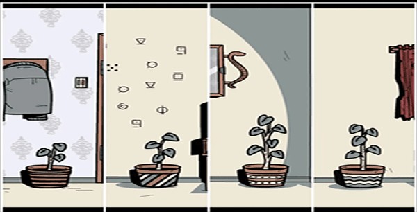 5、先观察房间四个角落花盆上的图案,紧接着数一数花盆上叶子的数量,然后依据笔记本里记录的花盆顺序输入密码(密码存在变动可能性),打开盒子并拿走其中的「火柴」。