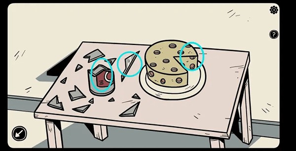 8、走到沙发旁,用石头砸破酒瓶,获取「钥匙」与「玻璃碎片」。随后,将玻璃碎片与把手组合起来,再用组合好的工具割下一小片「芝士」。